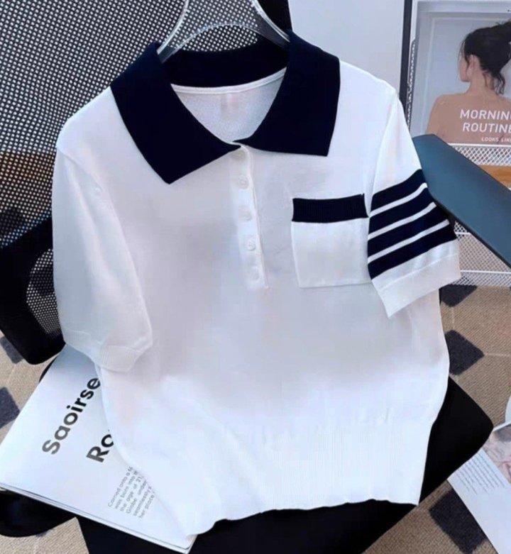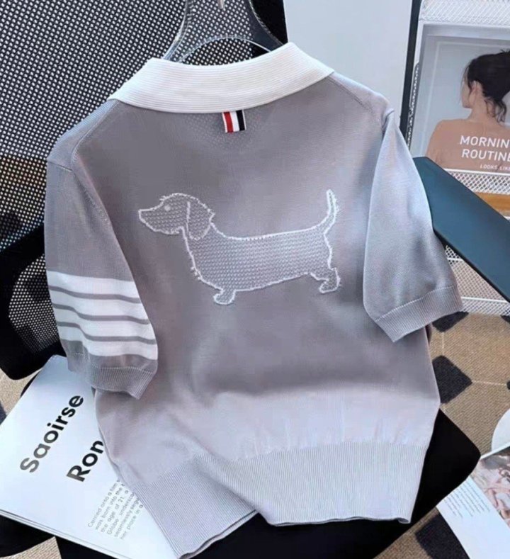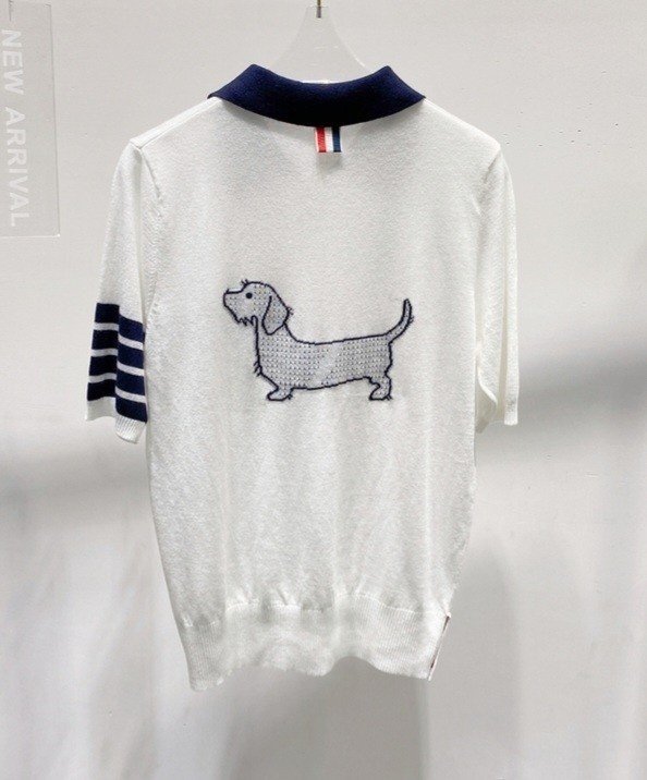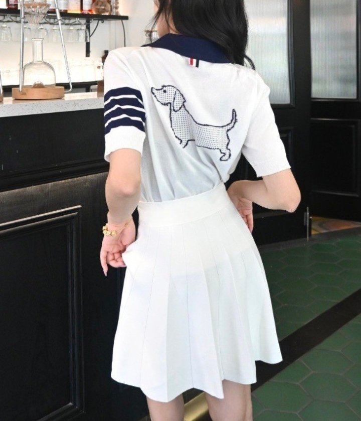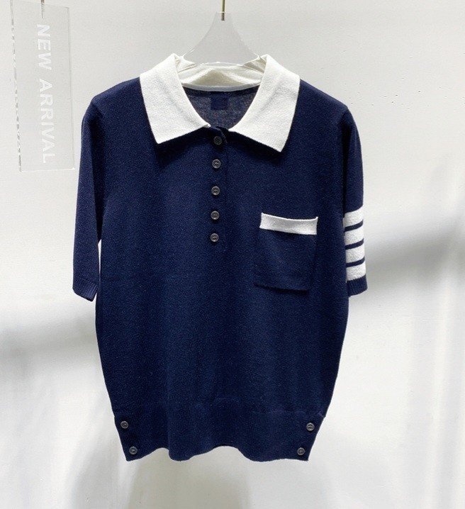 THOM BROWNE 톰브라운 빽 핵터 짜임 카라 반팔 니트 > 의류