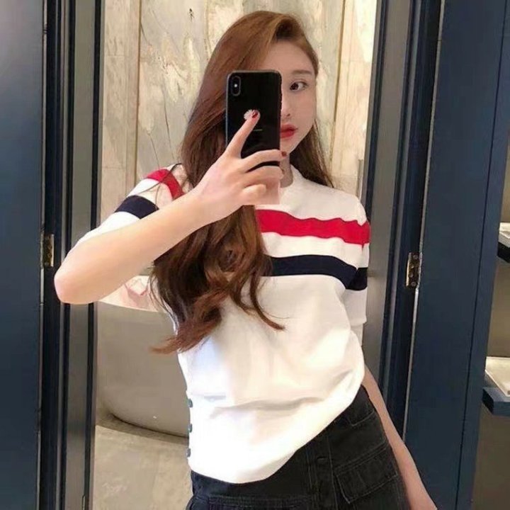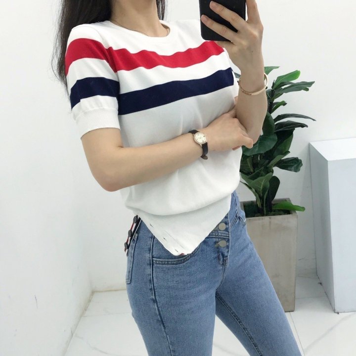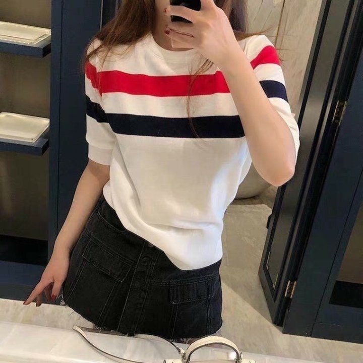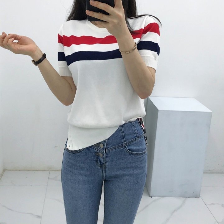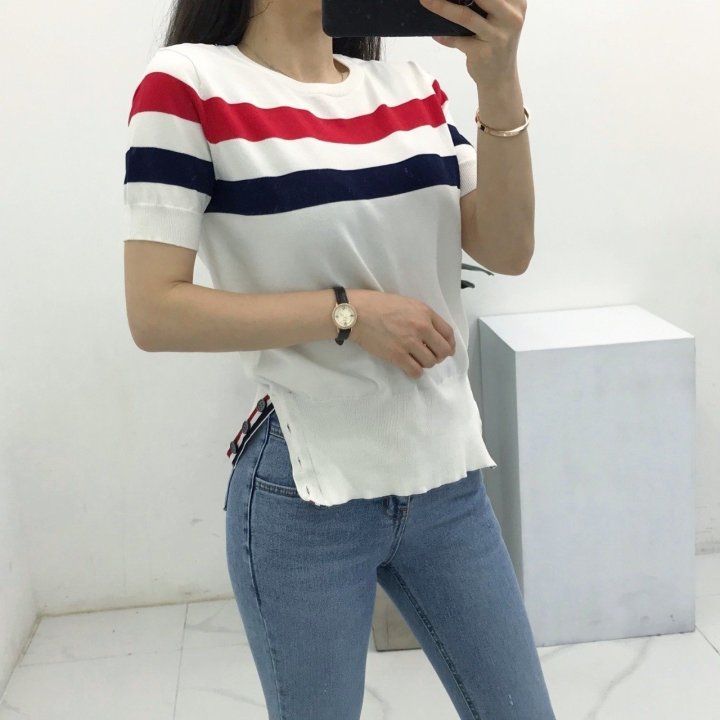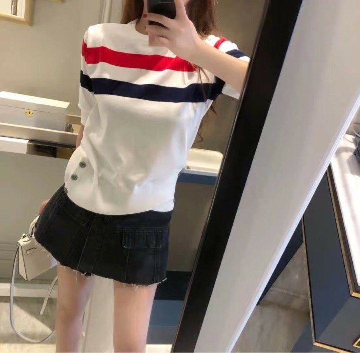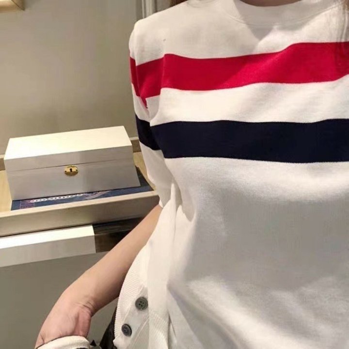 Thom Browne 톰브라운 삼선 반팔 라운드 니트 > 의류