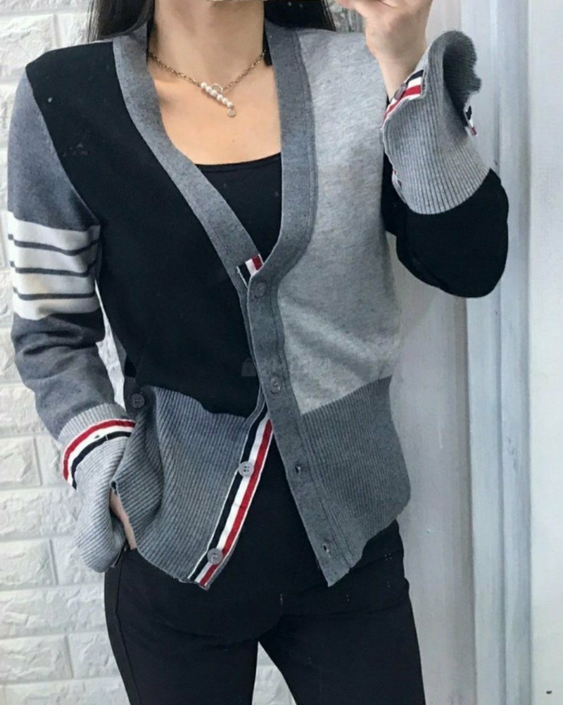 THOM BROWNE 톰브라운 배색 니트 가디건 > 의류
