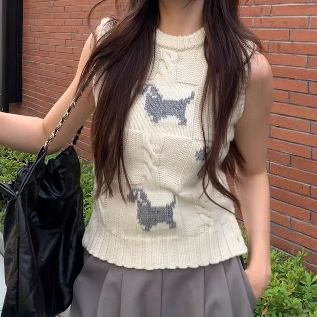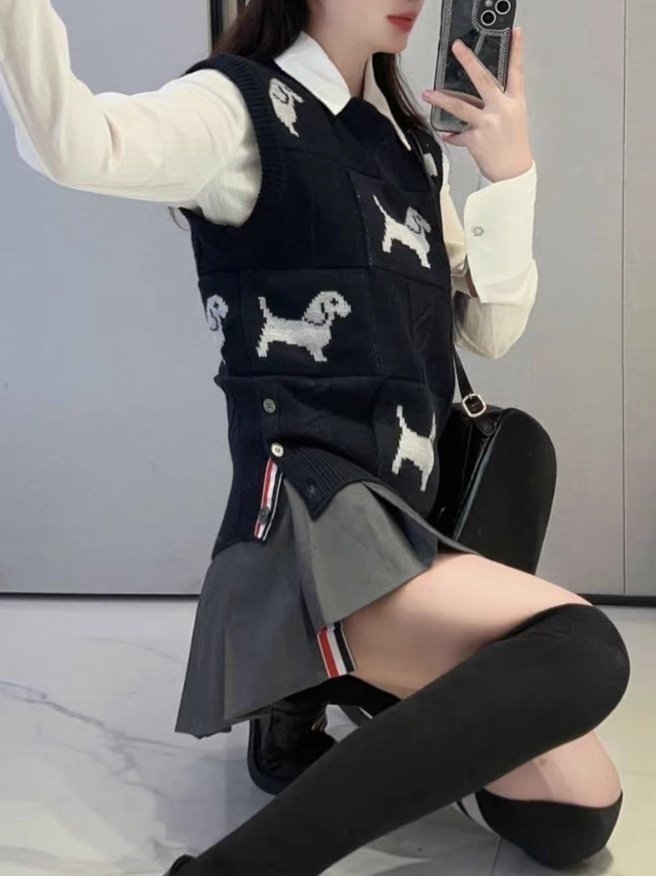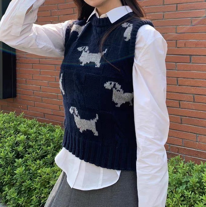 Thom Browne 톰브라운 도톰 자가드 패턴 강아지 니트 베스트 + > 의류