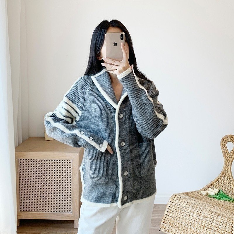 THOM BROWNE 톰브라운 카라라인 니트 가디건 > 의류