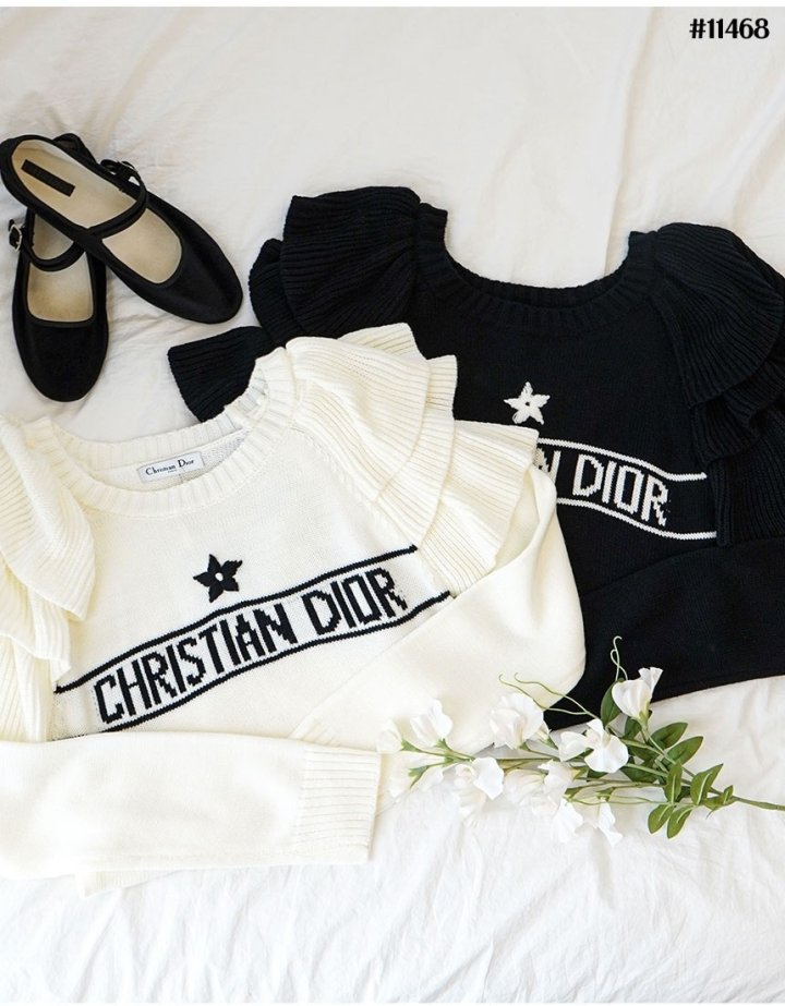 Dior 디올 여성 프릴 라운드 긴팔 니트 티셔츠 > 의류