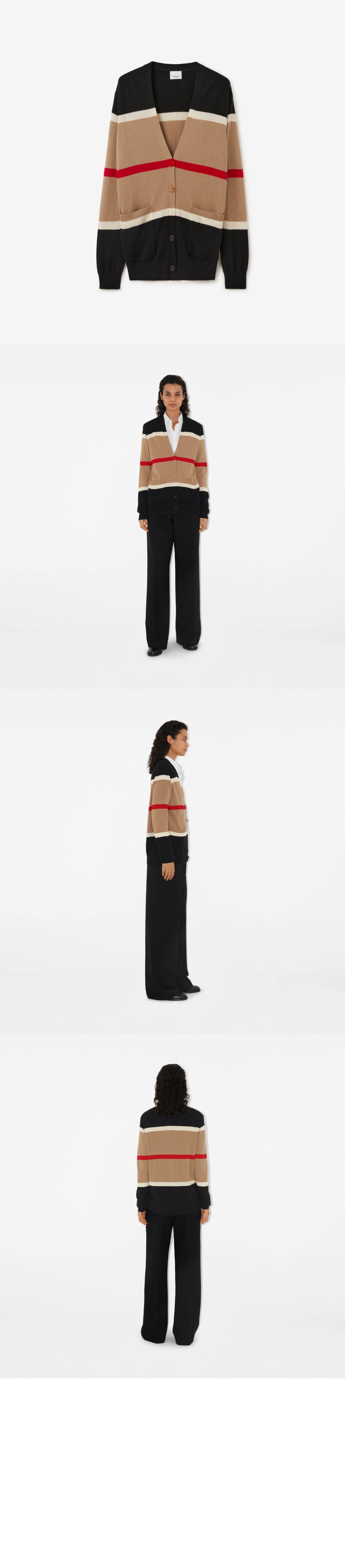 버버리 스트라이프 캐시미어 실크 가디건 80484241