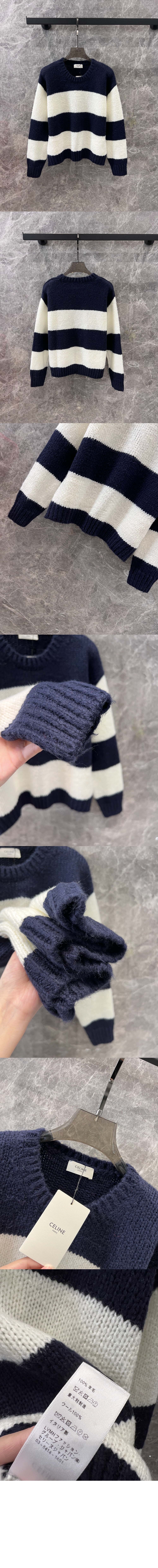 셀린느 청키 모헤어 울 스트라이프 크루넥 스웨터 2A16Z8