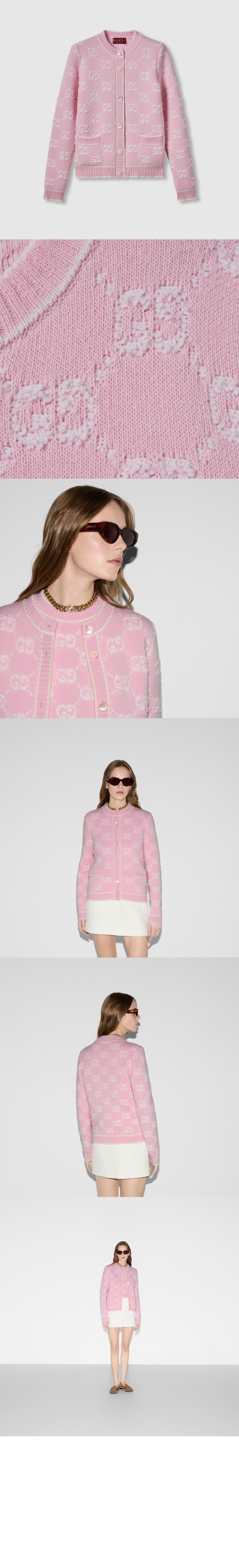 구찌 GG 울 부클레 자카드 가디건 713300