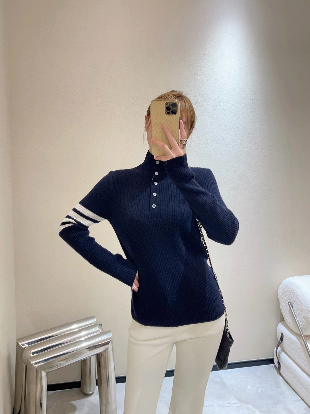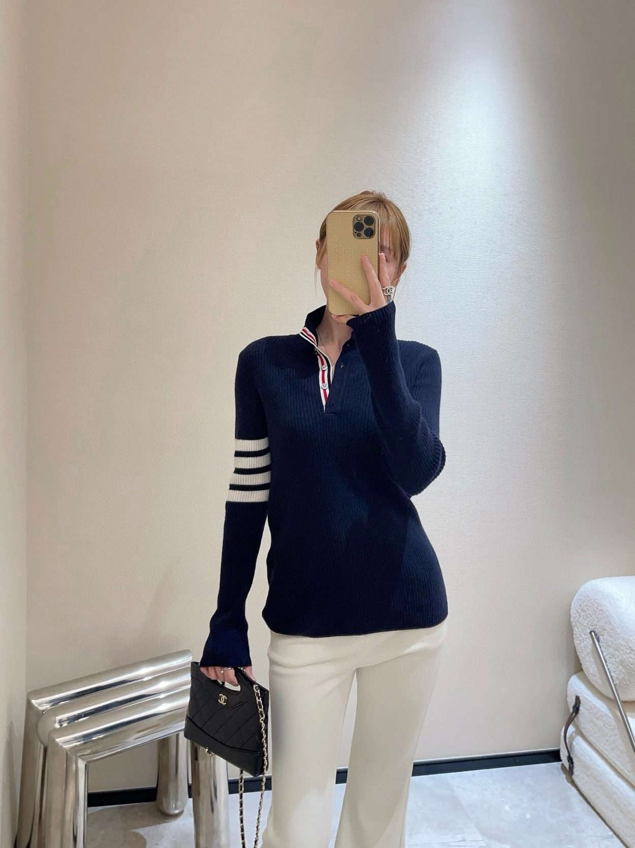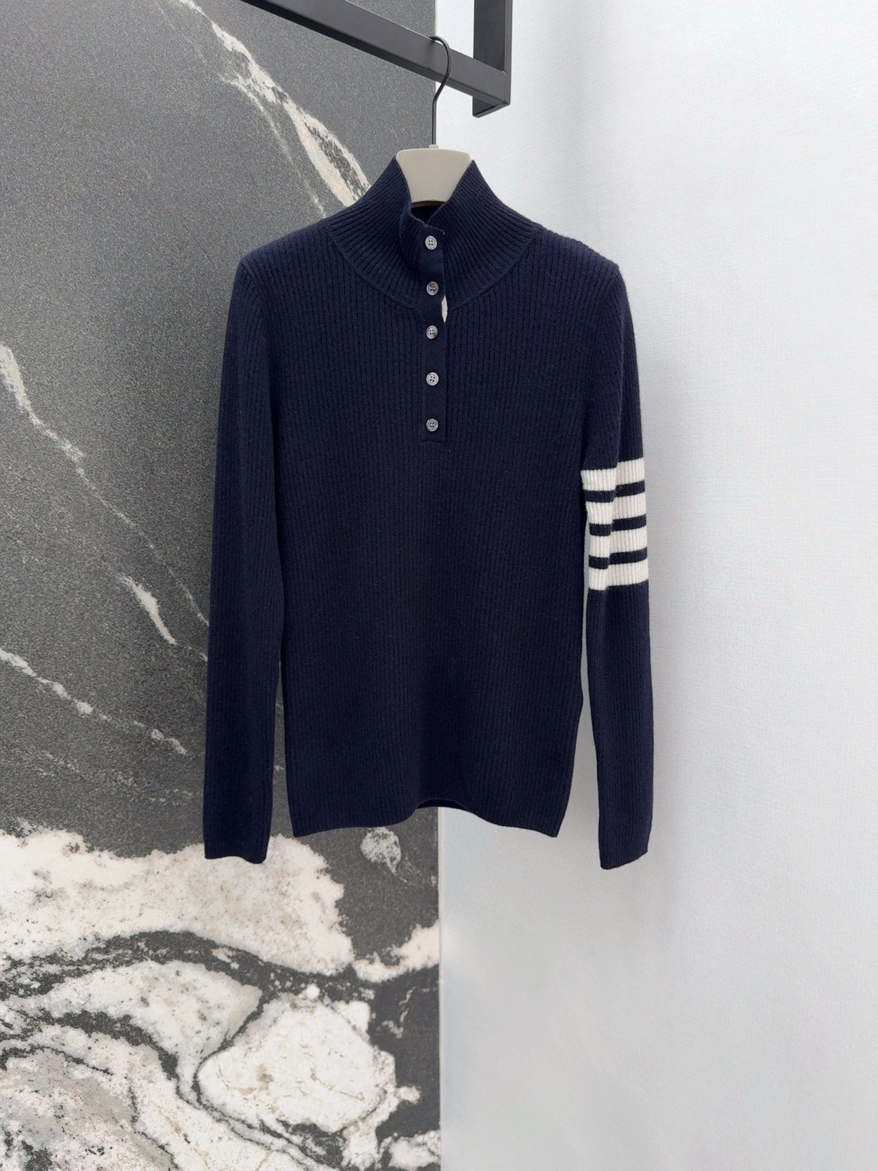 톰브라운 스트라이프 골지 니트 네이비 > 의류