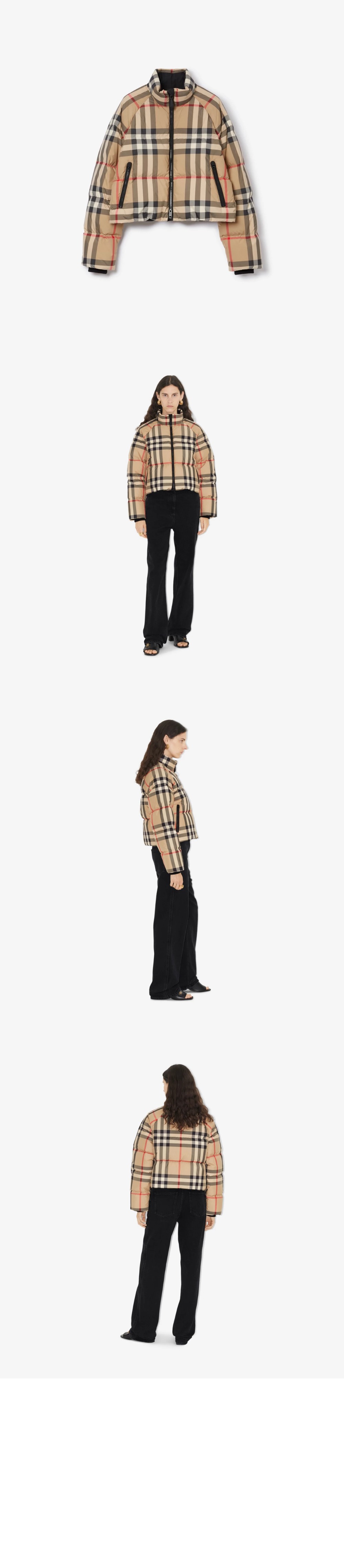 버버리 체크 크롭 푸퍼 하이넥 숏패딩 80590931