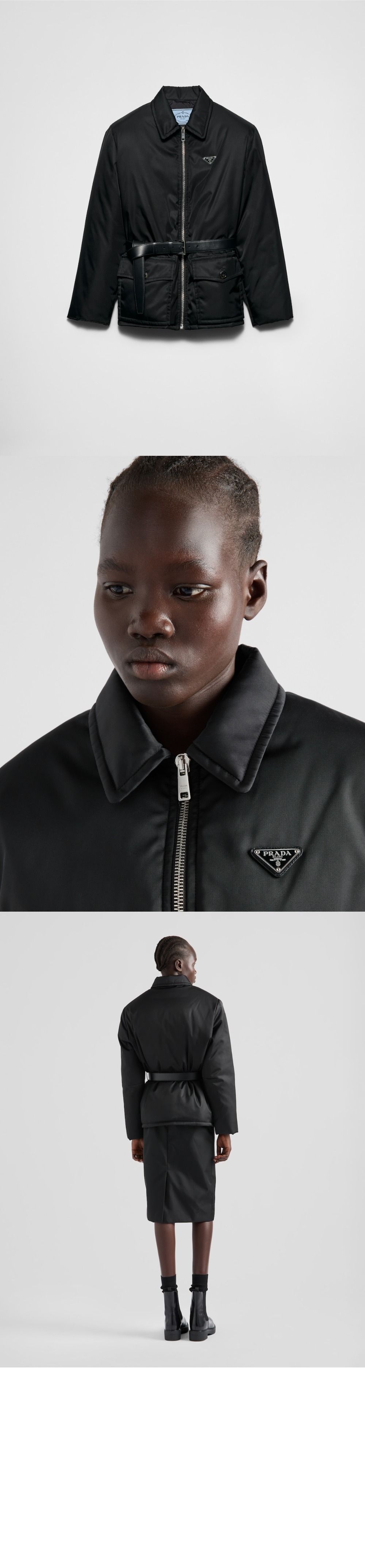 프라다 벨트가 달린 리나일론 다운 재킷 292200