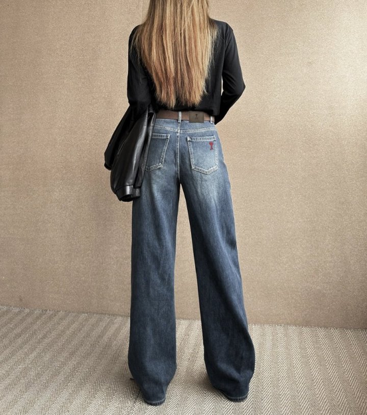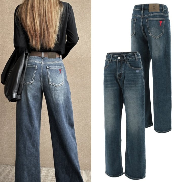 AMI 아미 레드하트자수 세미 와이드진 > 의류