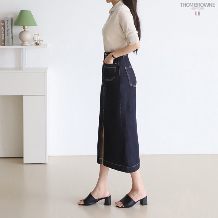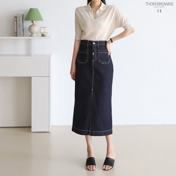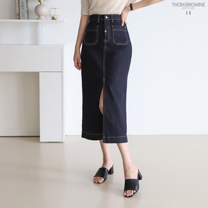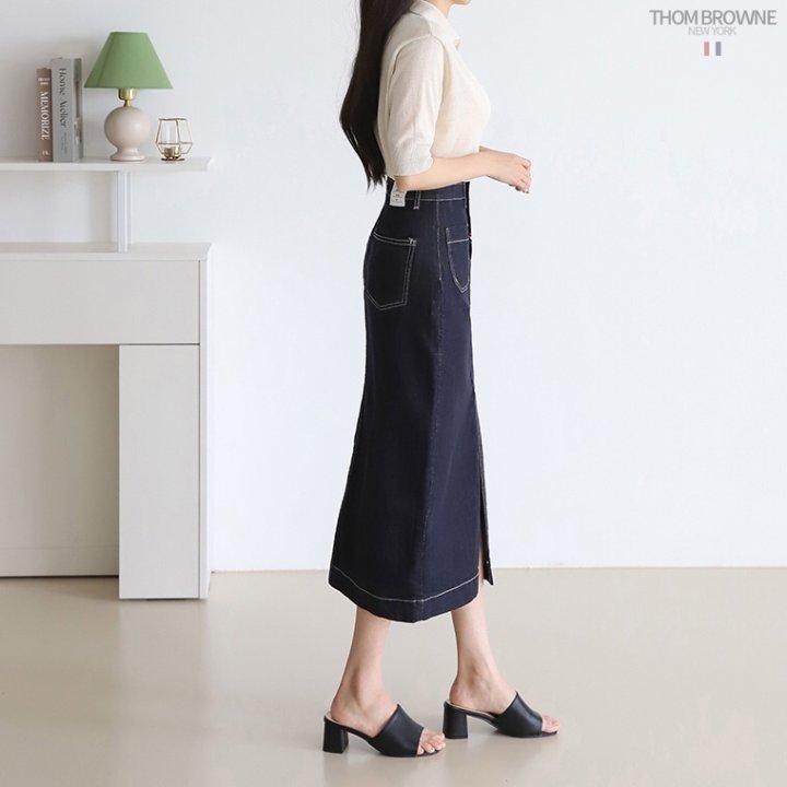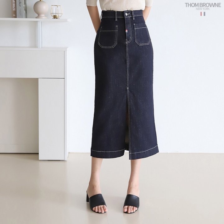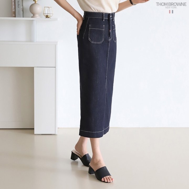 THOM BROWNE 톰브라운 워시 데님 롱 스커트 > 의류