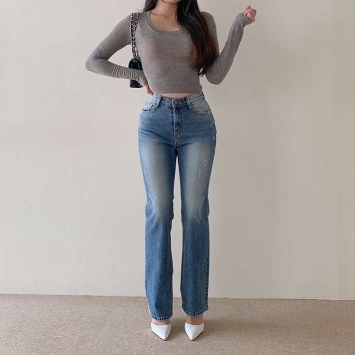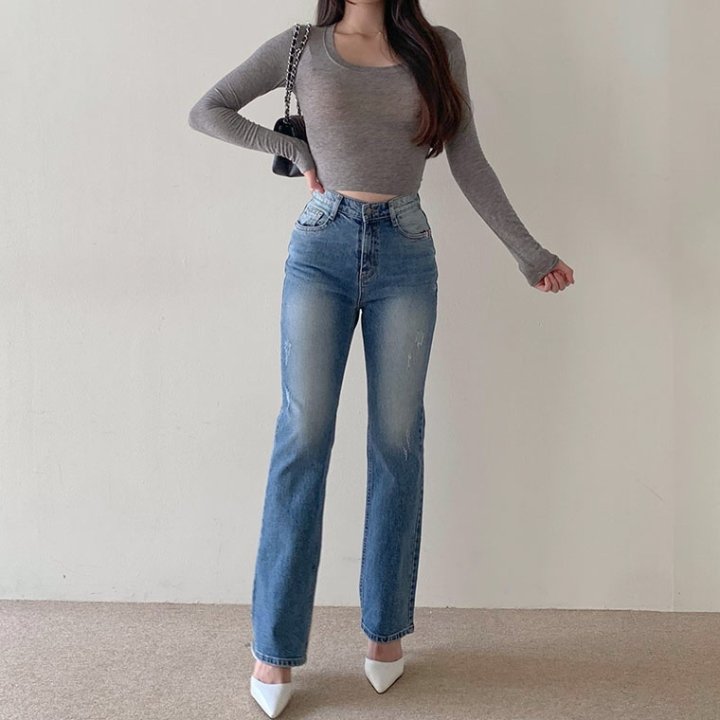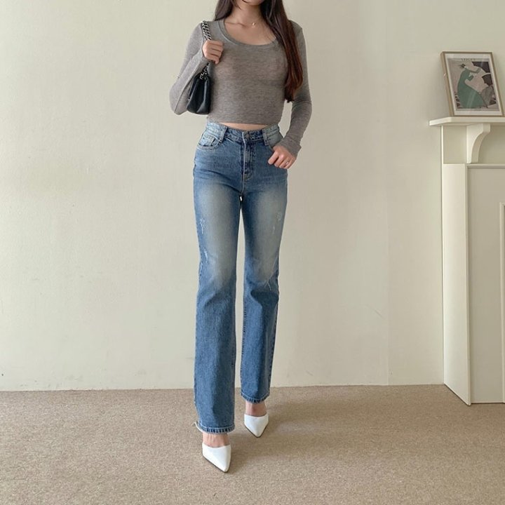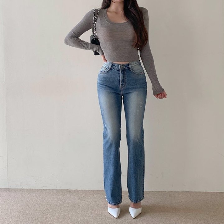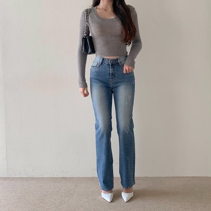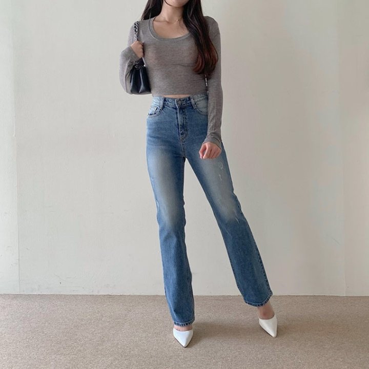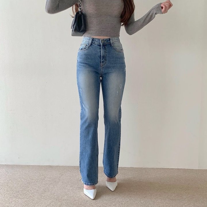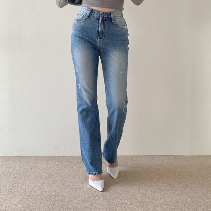THOM BROWNE 톰브라운 세미 와이드핏에 톤다운된 워싱 진 > 의류