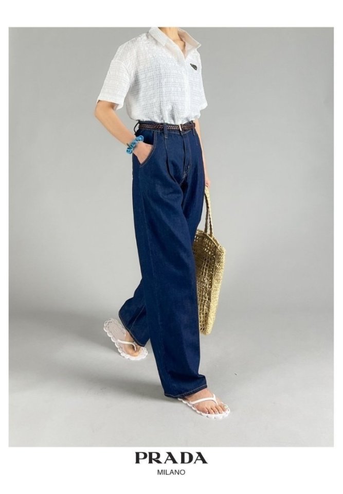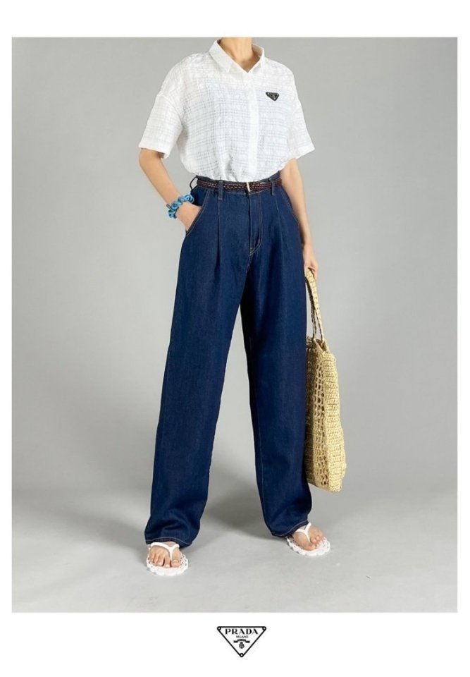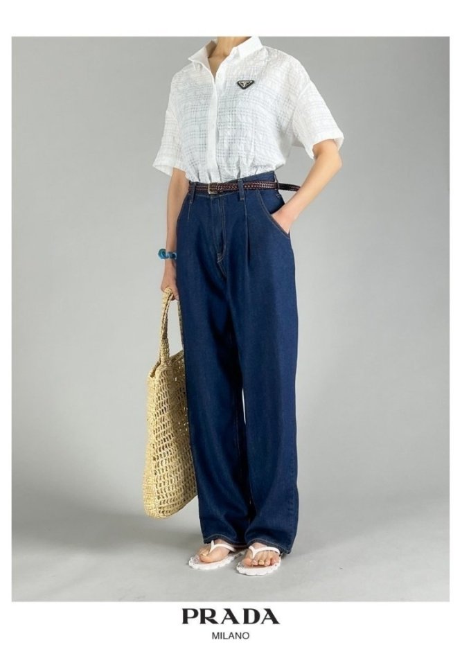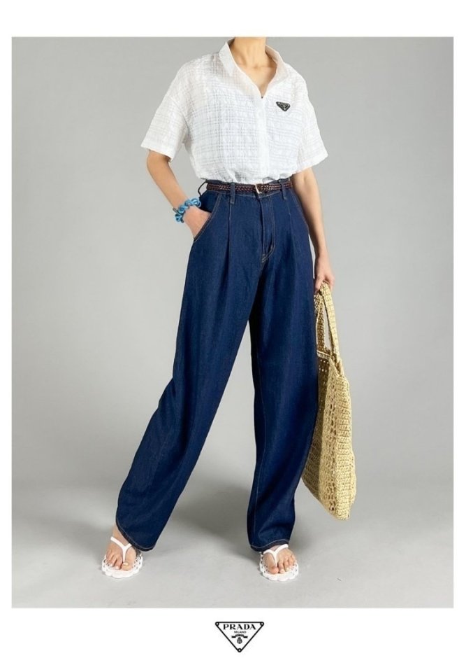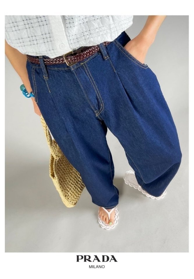 PRADA 프라다 핀턱 와이드 데님 > 의류