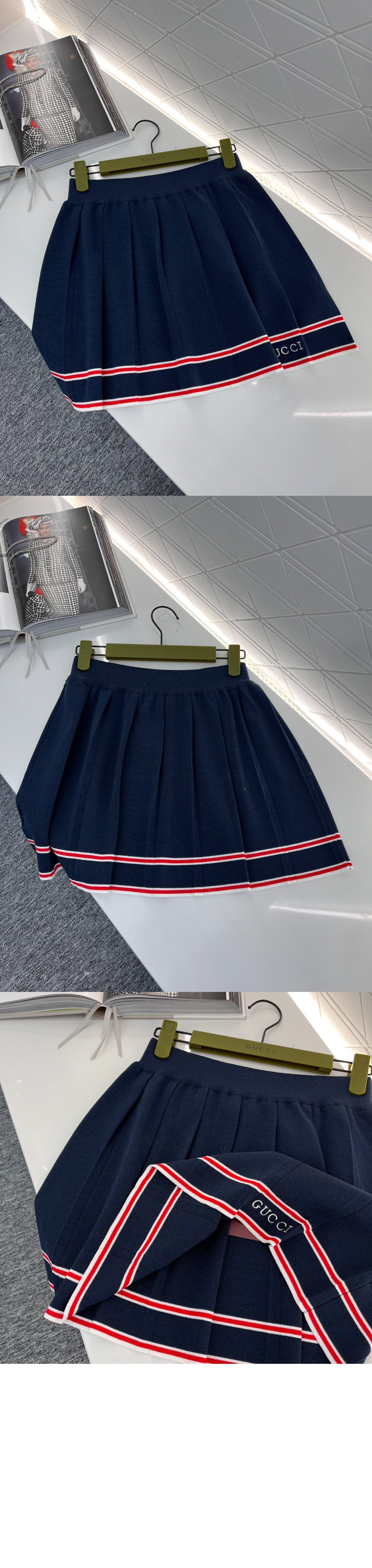 구찌 스트라이프 트리밍 플리츠 스커트 691712