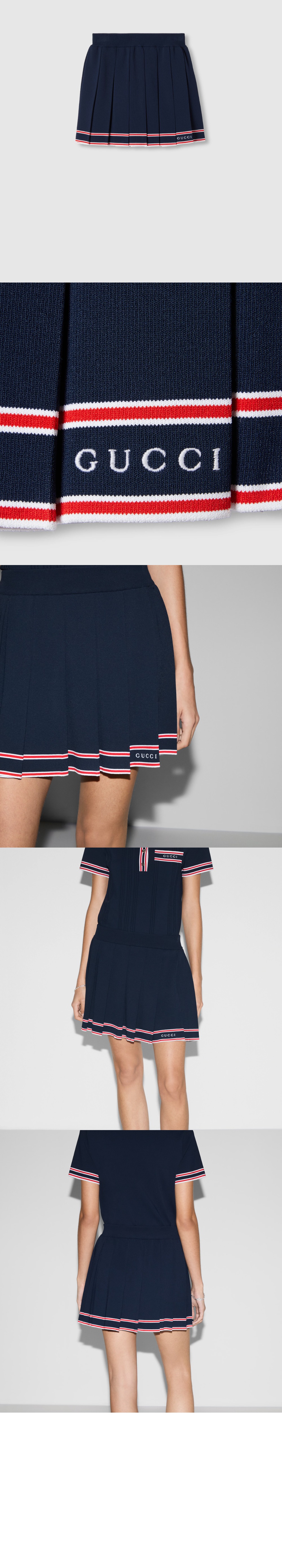 구찌 스트라이프 트리밍 플리츠 스커트 691712 > 의류