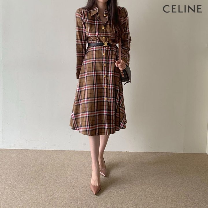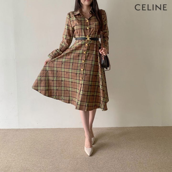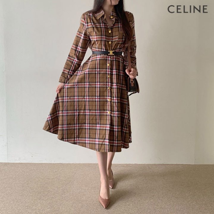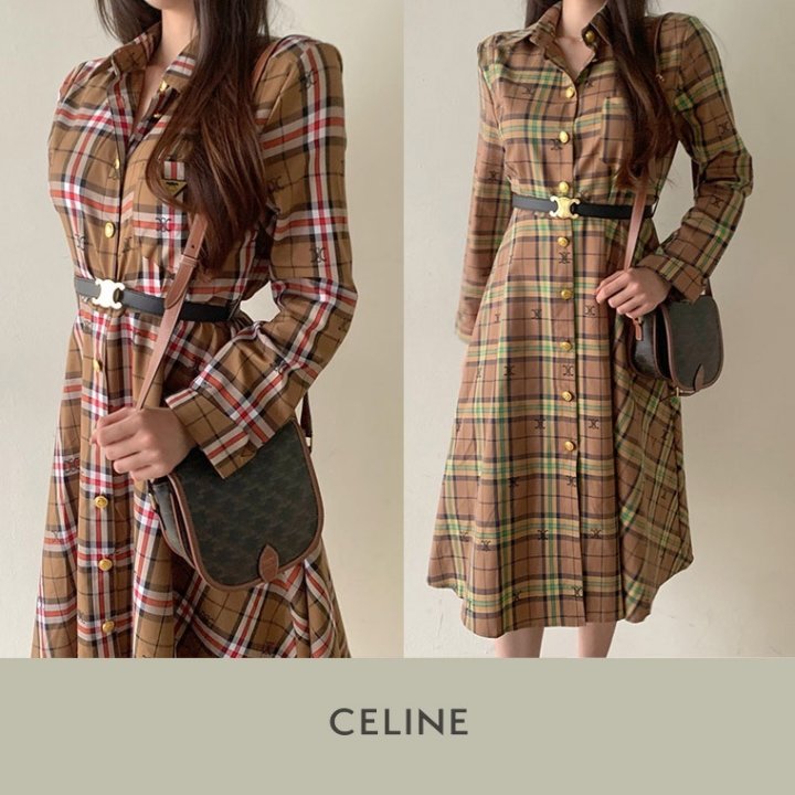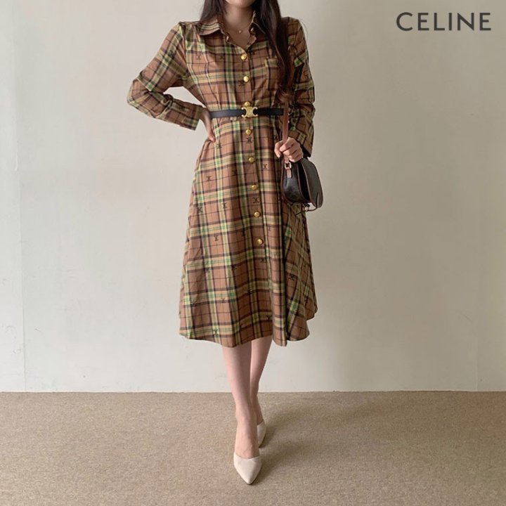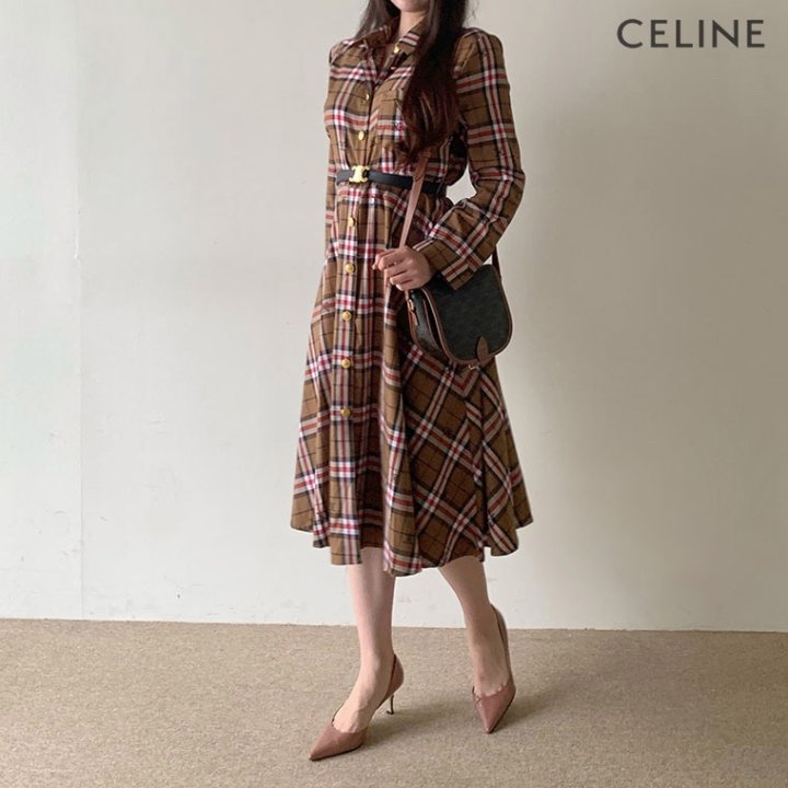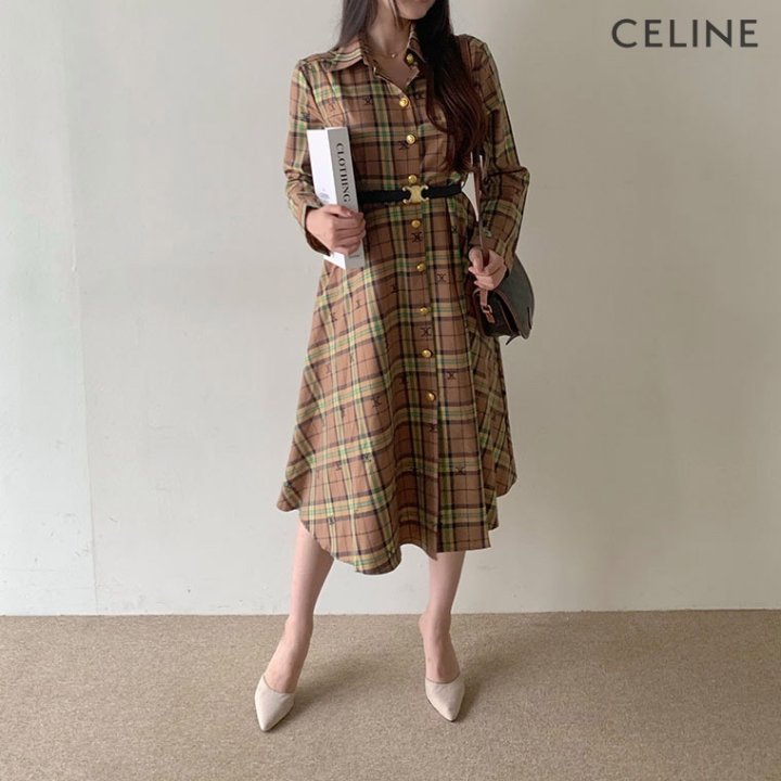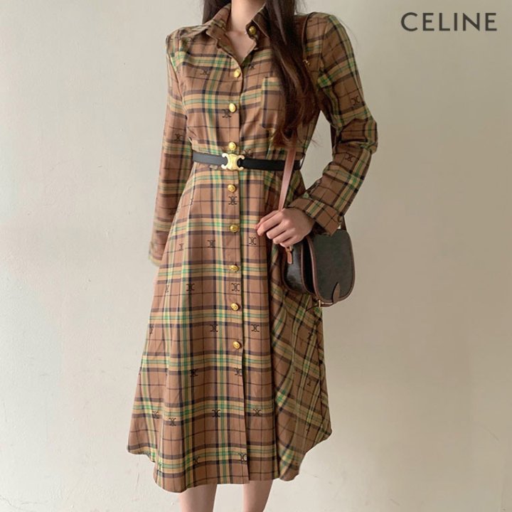CELINE 셀린느 코튼 체크 원피스 > 의류