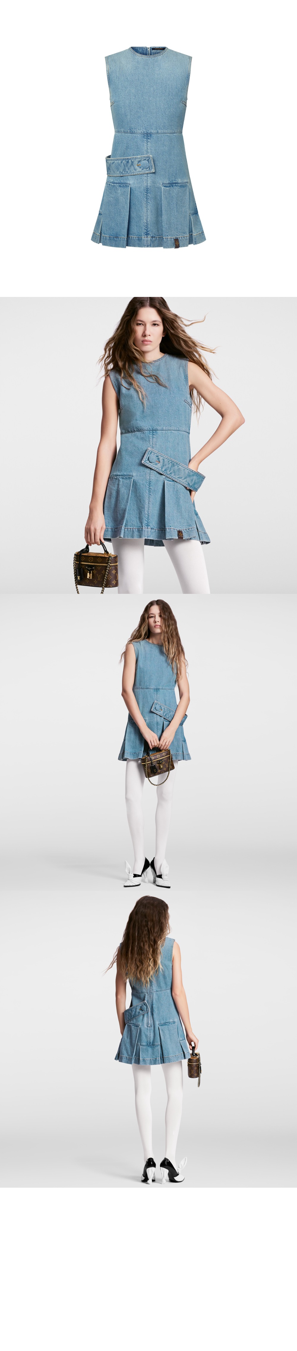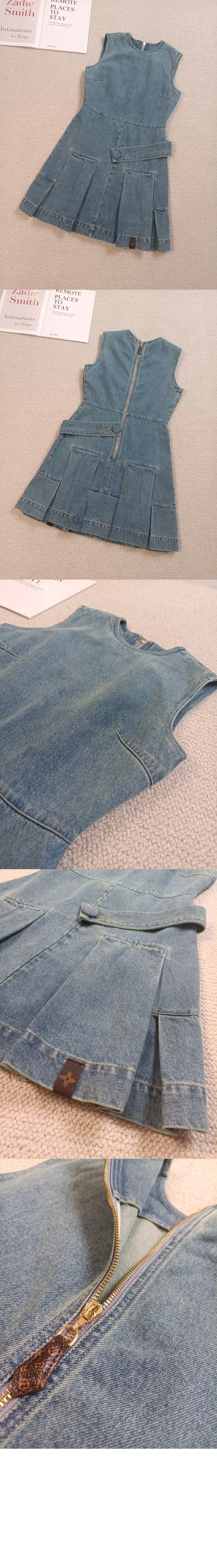 루이비통 데님 버튼 탭 플리츠 드레스 1AFLXX